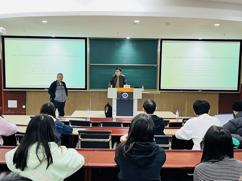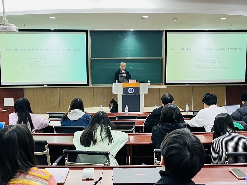 11月24日下午,北京师范大学周晔馨教授应公司邀请,在公司B201开展了题为“留守经历会改变儿童的偏好吗?”的学术讲座。讲座由bevictor1946韦德官网副经理高远东教授主持,公司70余位师生参加了此次讲座。