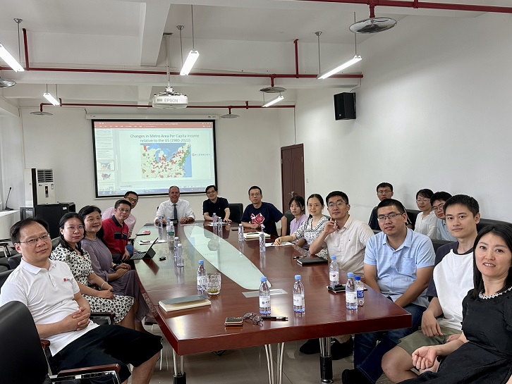 杜勇对远道而来的Mitchell教授表示热烈欢迎,并简要介绍其学术研究方向和研究成果。Mitchell教授首先概述了美国经济发展的演变趋势,随后深入剖析了美国制造业、批发贸易以及休闲酒店等行业就业结构变化,生动勾画出美国产业结构的演进脉络。