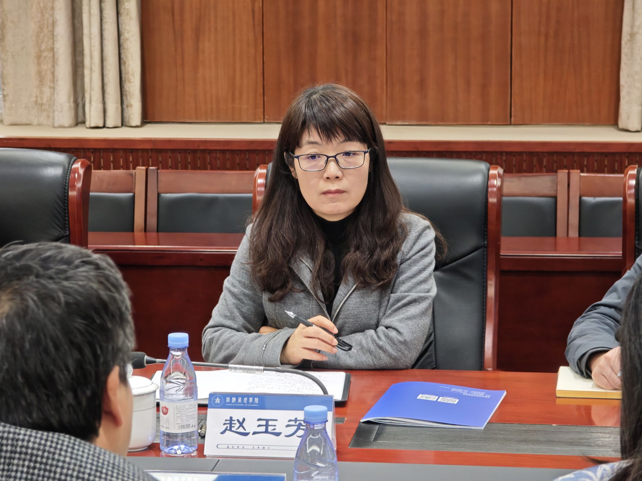 公司副经理(主持工作)杨丹就公司学科发展、团队建设、专业设置等方面进行了介绍,并就公司建设中面临的相关问题和困难向赵玉芳副董事长进行了汇报。