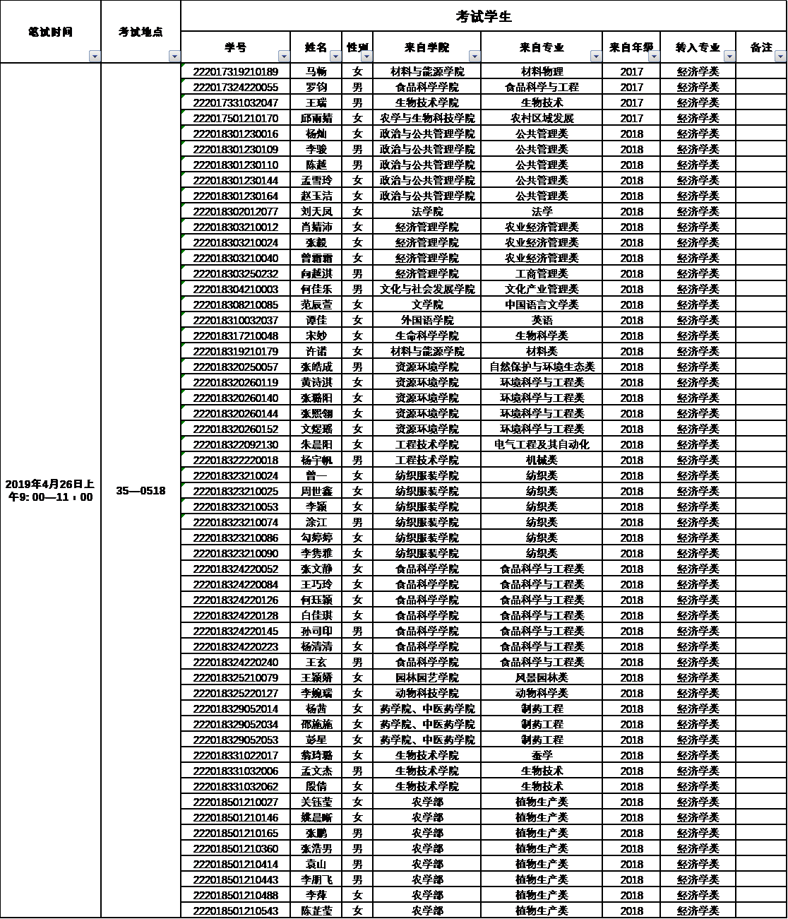 2019年春转专业员工笔试安排表