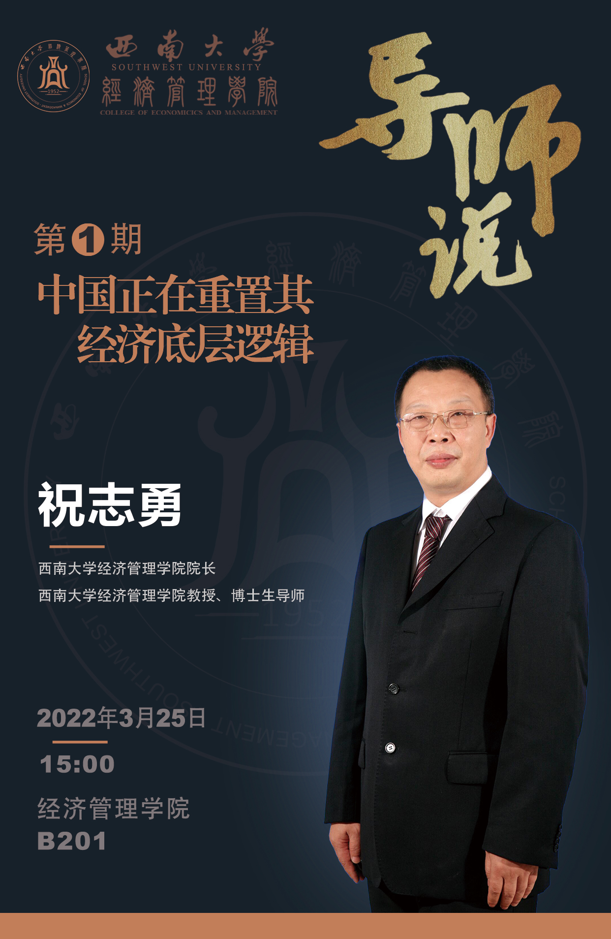 2022年3月25日15:00,“导师说”第1期即将举行。本期的主讲嘉宾为bevictor1946韦德官网经理、博士生导师祝志勇教授,主讲题目为《中国正在重置其经济底层逻辑》,欢迎大家积极报名参与!