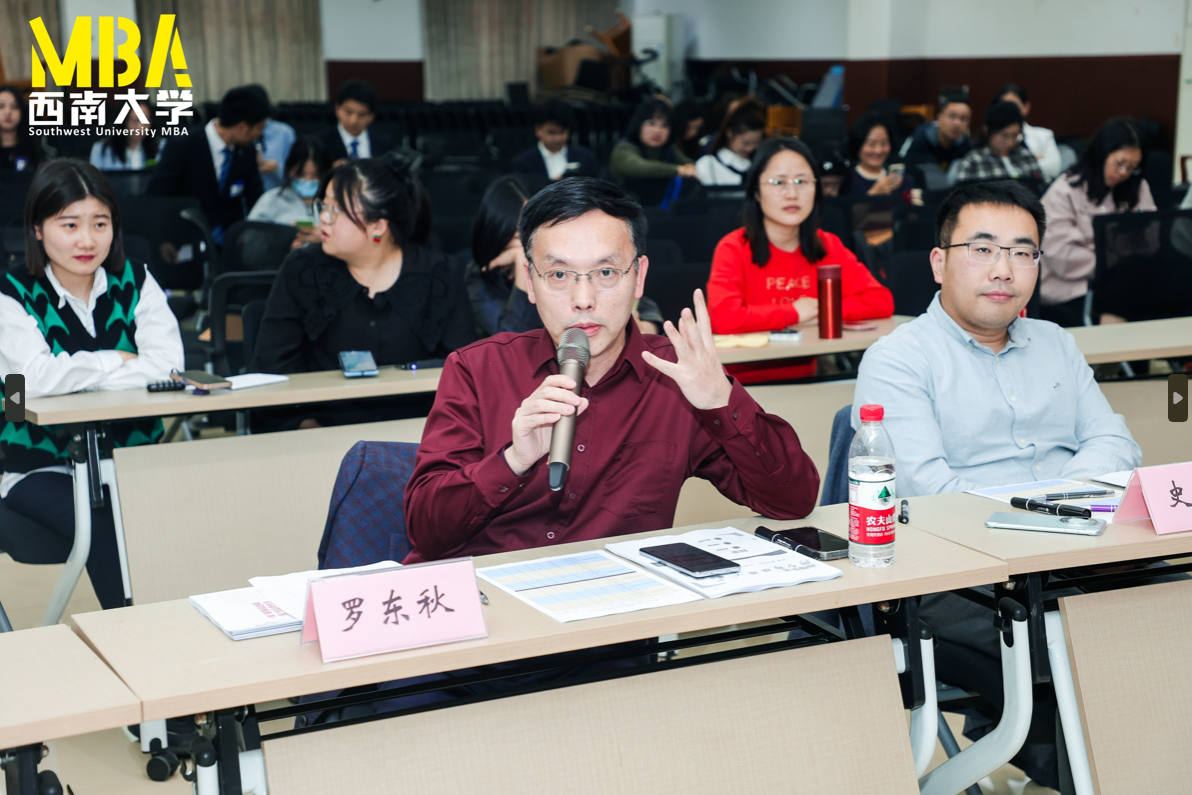 重庆亿琅投资管理有限公司罗东秋董事长、公司邓宗兵教授、杨刚教授、石声萍副教授、刘向强副教授、范昕老师组成B101赛场专家评审团,公司案例中心主任石声萍为评审团主席,陶雅老师、唐健老师、史轩亚老师以案例指导老师的身份莅临比赛现场。B101赛场的主持人是2023级大成班郭均颖、杨诗其。