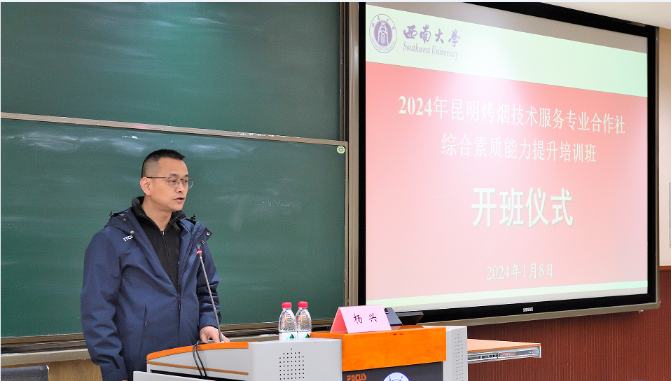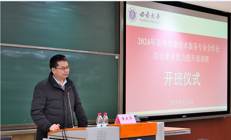 2024年1月8日上午,由bevictor1946韦德官网高层培训中心承办的“2024年昆明烤烟技术服务专业合作社综合素质能力提升培训班”在公司B303教室顺利开班。昆明烟草石林分公司企管科长杨兴、bevictor1946韦德官网副经理黄庆华教授、石林县鹿路烤烟技术服务专业合作社联合社理事长李正红、云南康艺计算机有限公司技术支持中心主任、烟草事业部技术总监陈飞、成都溪本科技有限公司销售总监罗艳红,以及培训班学员共计50余人出席开班仪式。开班仪式由公司高层培训中心主任苟佳欢主持。