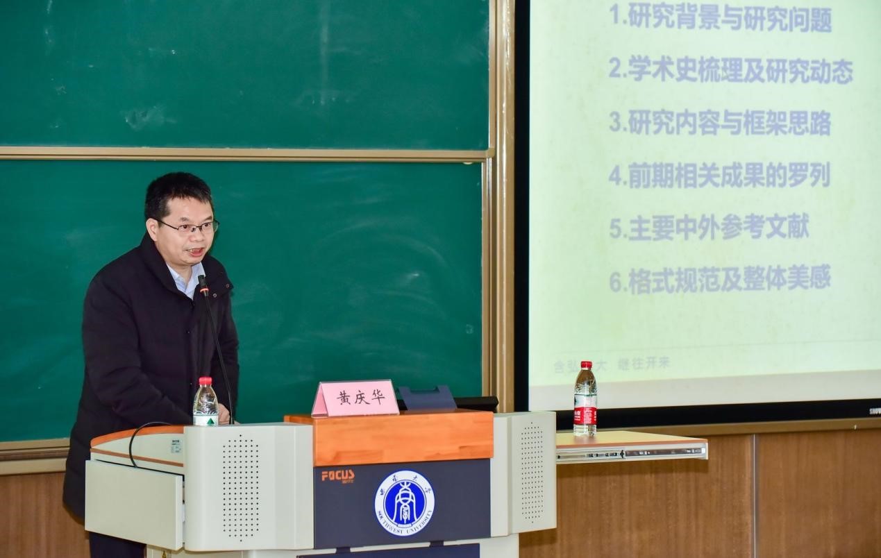 黄庆华做学术报告《社科基金项目选题方法暨申报书写作规范》