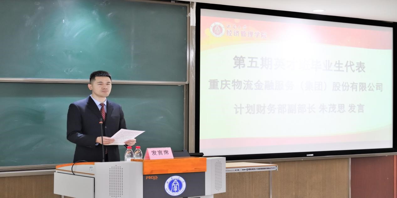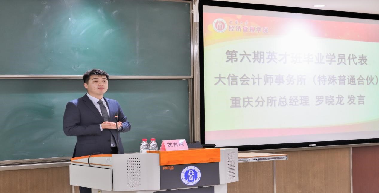 第五期青年英才班学员朱茂思和第六期青年英才班学员罗晓龙分别代表各期受训学员发言。他们寄语全体毕业学员要不惧艰险,勇往直前。承重庆财政创新之风,寻真逐梦,展翅翱翔;擎重庆会计英才之旗,高歌猛进,奋发图强。
