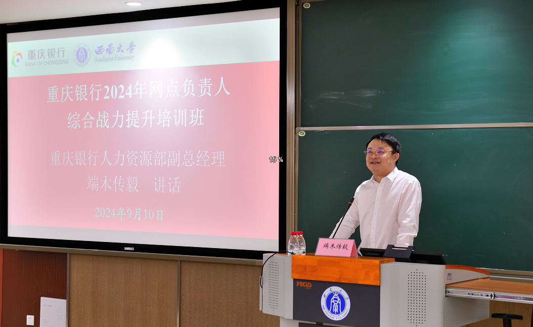 2024年9月10日上午,由重庆银行人力资源部主办、bevictor1946韦德官网高层培训中心承办的“重庆银行2024年网点负责人综合战力提升培训班(共三期)”在公司B301报告厅顺利开班。重庆银行人力资源部副总经理端木传毅、bevictor1946韦德官网副经理黄庆华教授,以及重庆银行2024年网点负责人综合战力提升培训班(第一期)全体学员共计40余人出席开班仪式。开班仪式由公司高层培训中心主任苟佳欢主持。