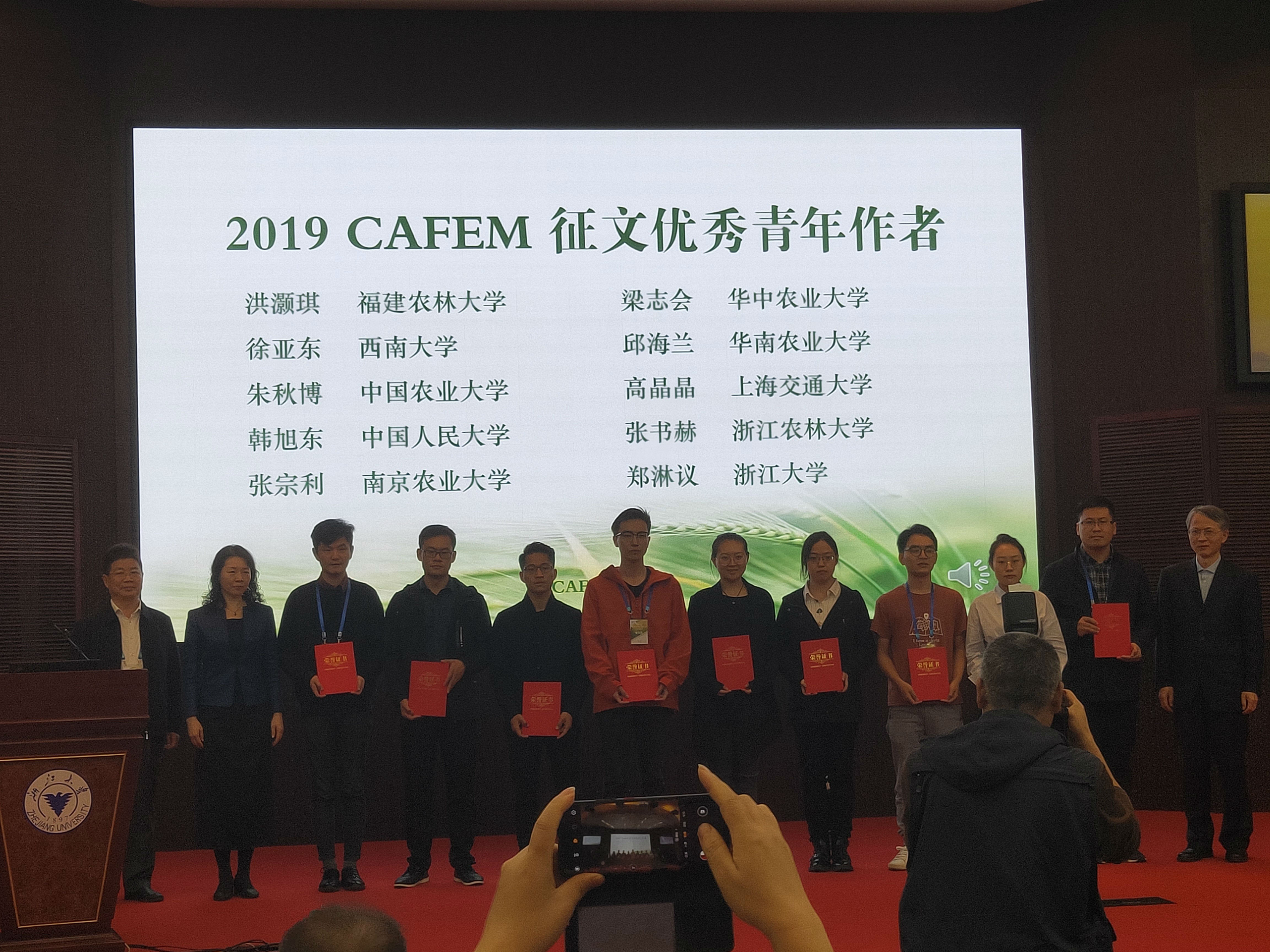 公司研究生徐亚东获“2019中国农林经济管理学术年会”优秀论文奖